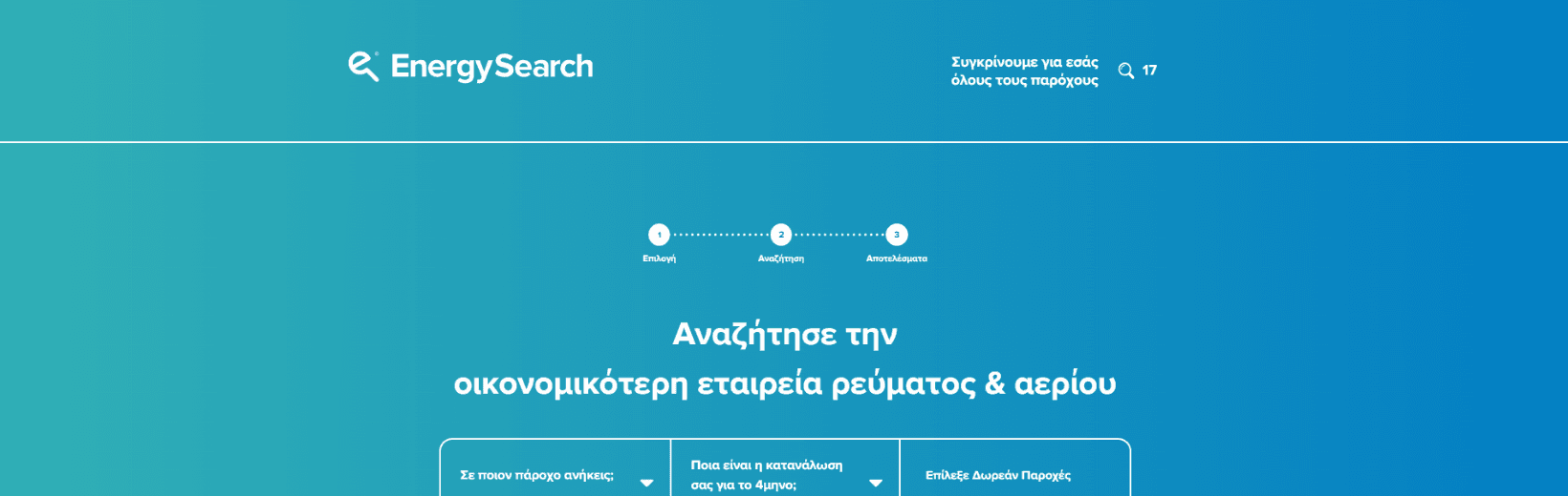 Το Energy Search είναι μια ελληνική διαδικτυακή πλατφόρμα σύγκρισης παρόχων ηλεκτρικής ενέργειας και φυσικού αερίου. Ο ιστότοπος αποτελεί Custom υλοποίηση της Fixit, η οποία επιμελήθηκε το σύνολο της ανάπτυξης και του σχεδιασμού, προσφέροντας μια κορυφαία εμπειρία πλοήγησης που ανταποκρίνεται στις απαιτήσεις της σύγχρονης ενεργειακής αγοράς